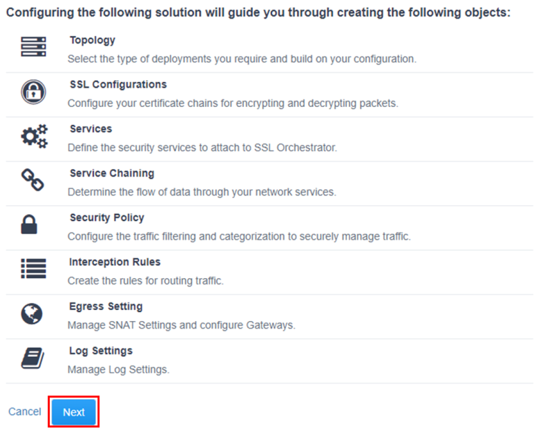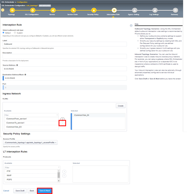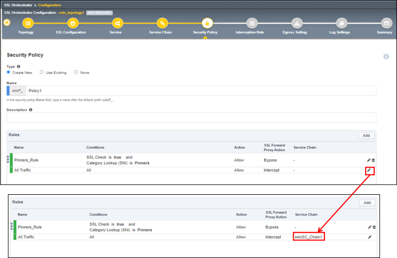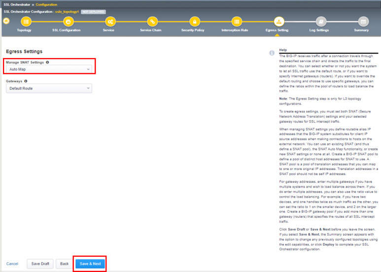 Topology - SSL - Service - Serivce Chaining - Security Policy - Interception Rules - Egress - Log 순서로 편리하게 설정 하게 됩니다.