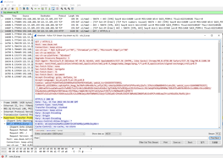 더불어 AirGap 에서 패킷을 확인해보면 SSL을 정상적으로 가시화 처리 했음도 확인하였습니다.