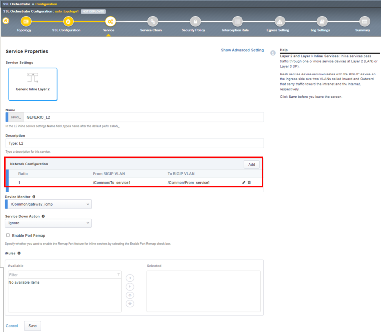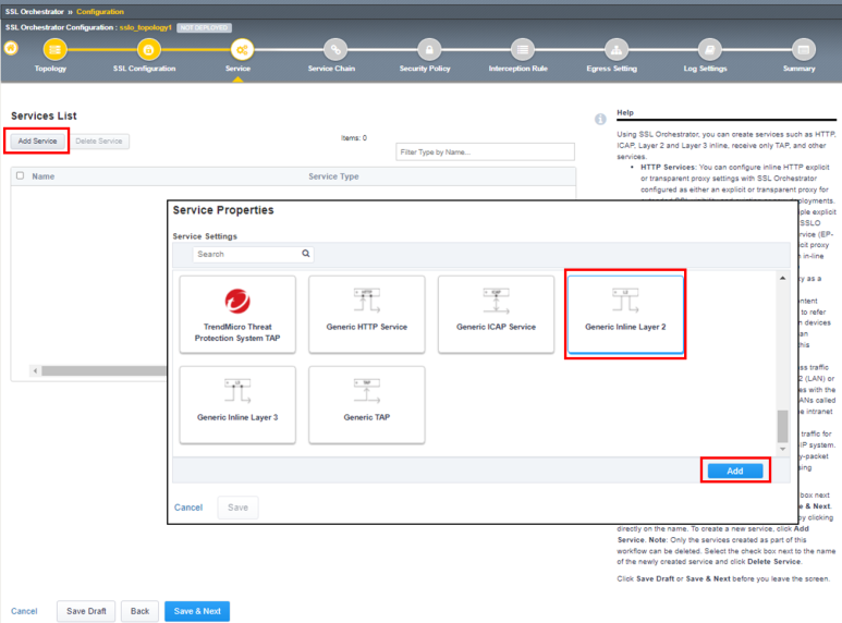 저는 F5 장비를 Virtual Wire 로 물려서 진행할 예정이라 Generic Inline Layer2 서비스를 선택 하였습니다.
