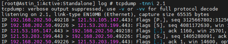 첫번째 서비스인 2.1인터페이스로는 정상적으로 트레픽이 확인되지만