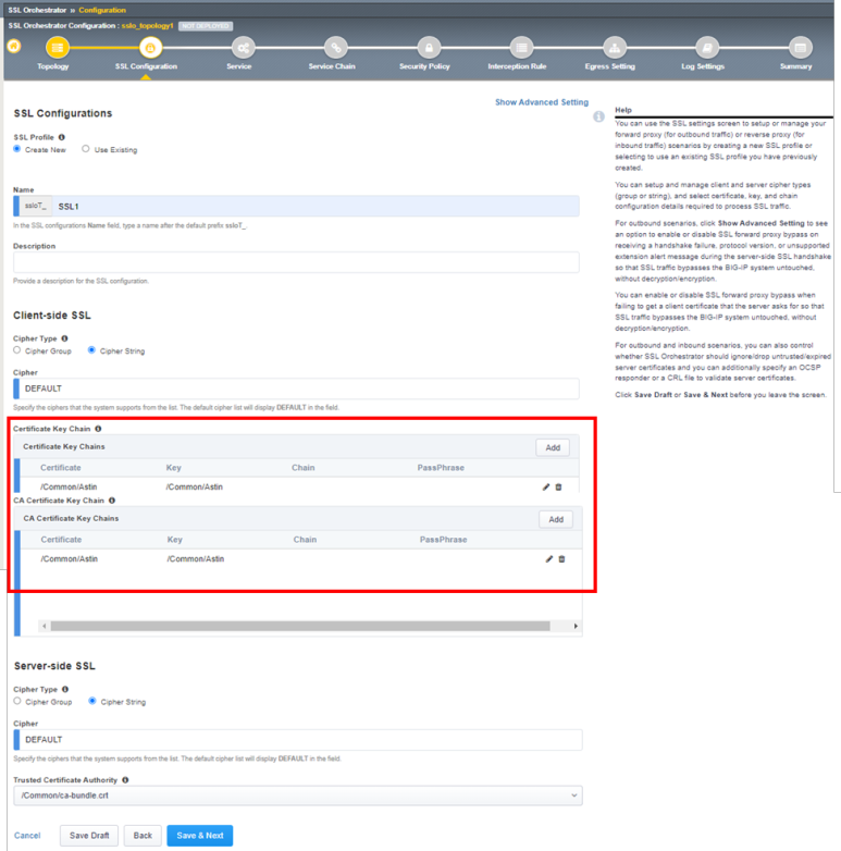 SSLO 특성상 외부로 나가는 트레픽에 대해서 Forward Proxy 동작을 하게 되므로 SSL설정이 필요합니다.