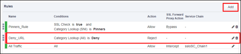 Secure Policy 에서 Deny_URL 이라는 이름으로 Deny를 Reject 하라는 정책을 추가 하였습니다.
