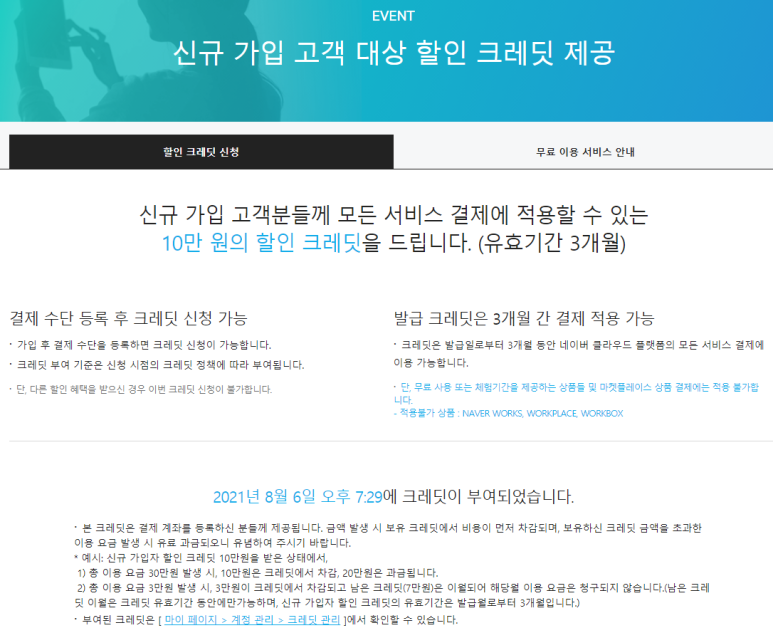 신규가입자에게는 한달간 10만 크레딧 사용할 수 있는