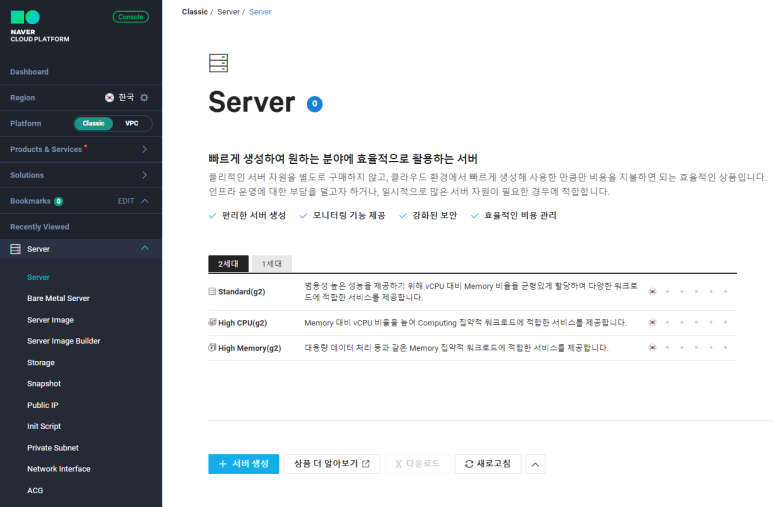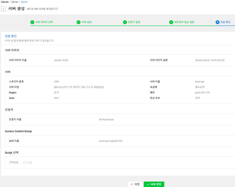 여기까지가 서버생성에 대한 기본 가이드 입니다.
