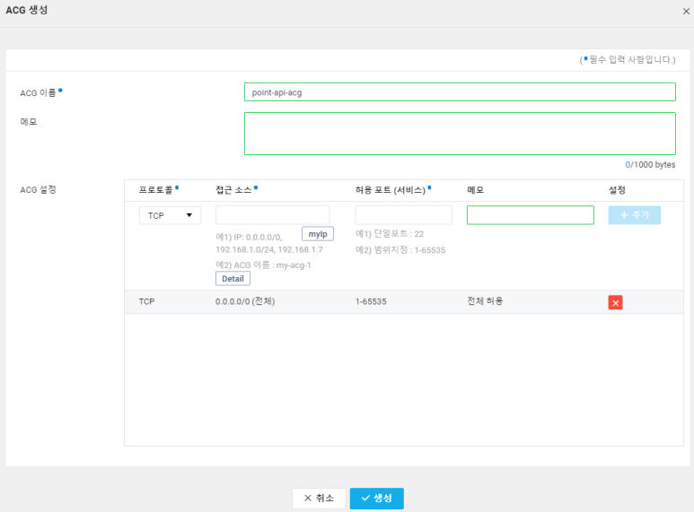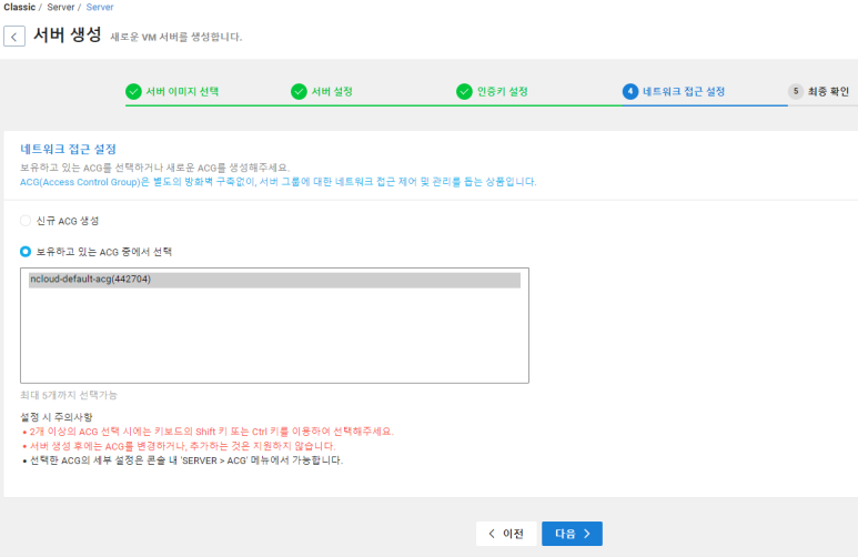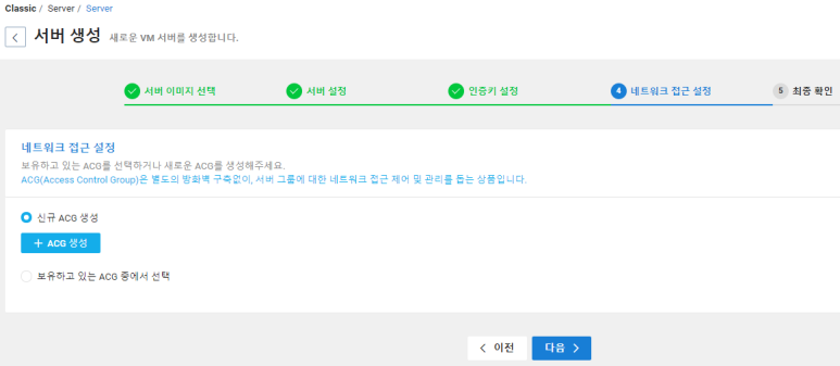 네이버에서는 네트워크 방화벅 설정을 ACG라고 부릅니다.