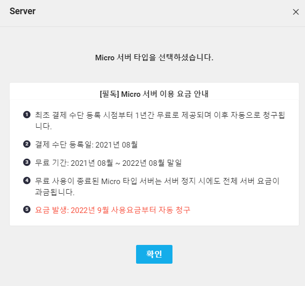 그리고 micro 서버 타입의 경우 1년간 무료사용제공 하니 테스트시에는 micro 타입으류 테스트 해봅니다.