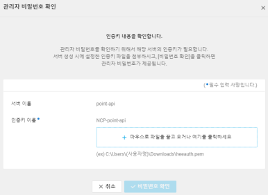 생성시 만들었던 인증서를 넣으면 초기 패스워드 확인이 가능합니다.