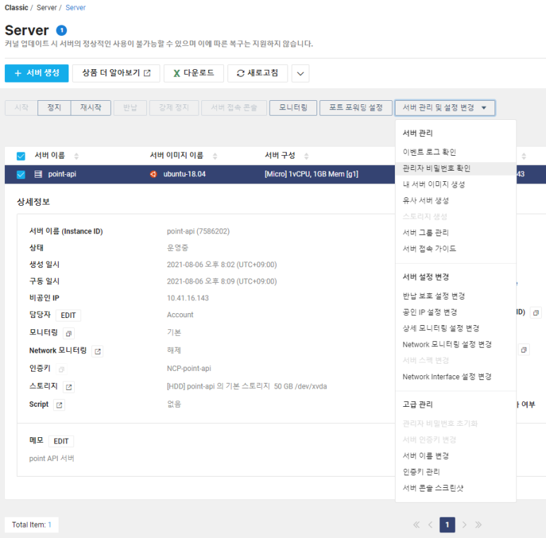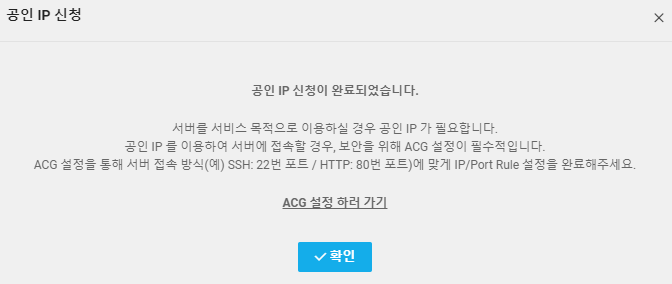 패스워드 설정을 하셨다면, 외부에서 서버 제어 및 서비스를 위해서 공인 ip설정을 해주어야 합니다.