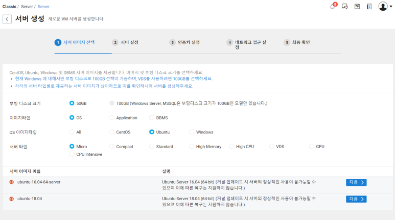 서버 OS를 ubuntu로 선택해 주었습니다.