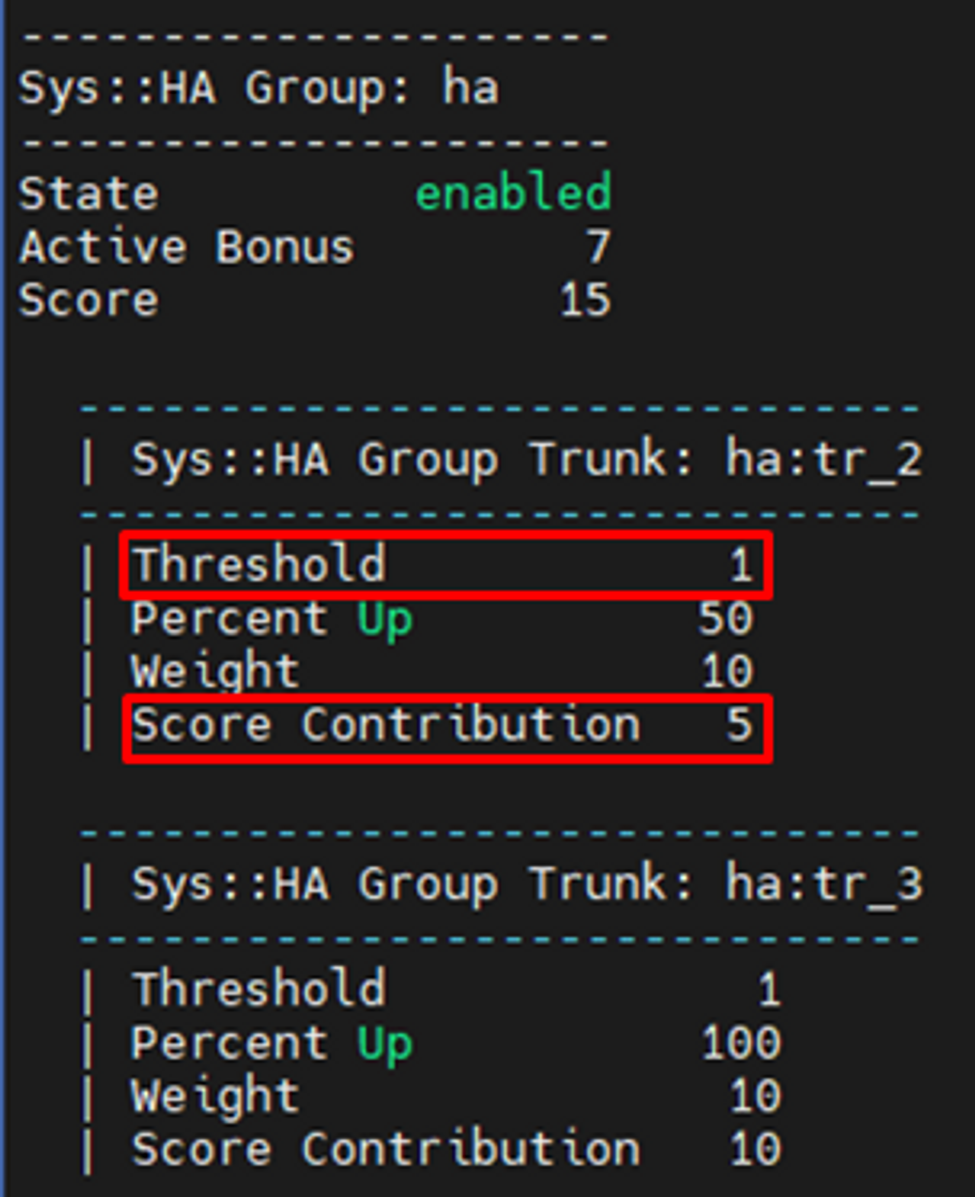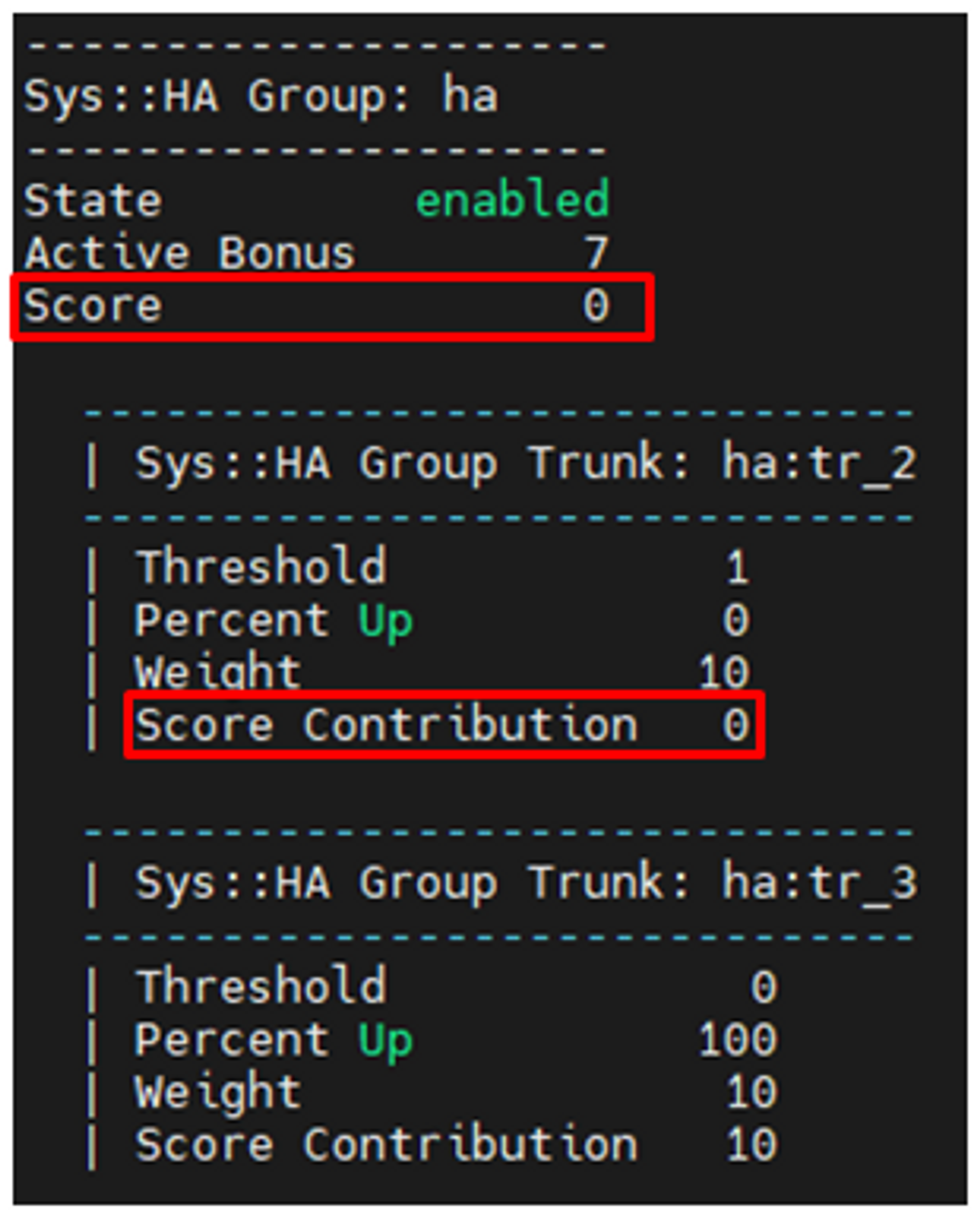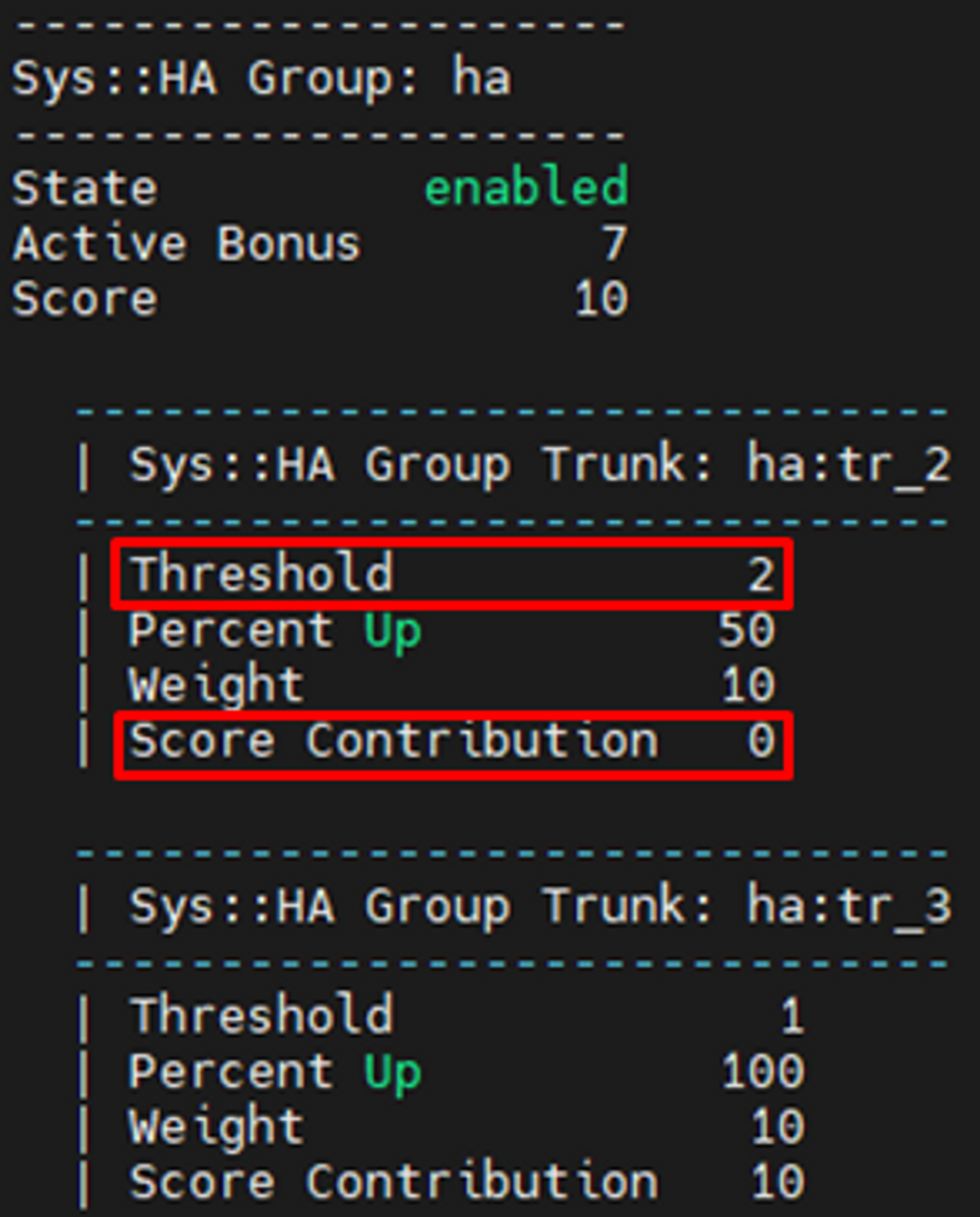 Beginning in BIG-IP 13.0.0, if fewer than the minimum-threshold of objects within a component are available, then both the monitored component score and the total HA group score are set to 0.