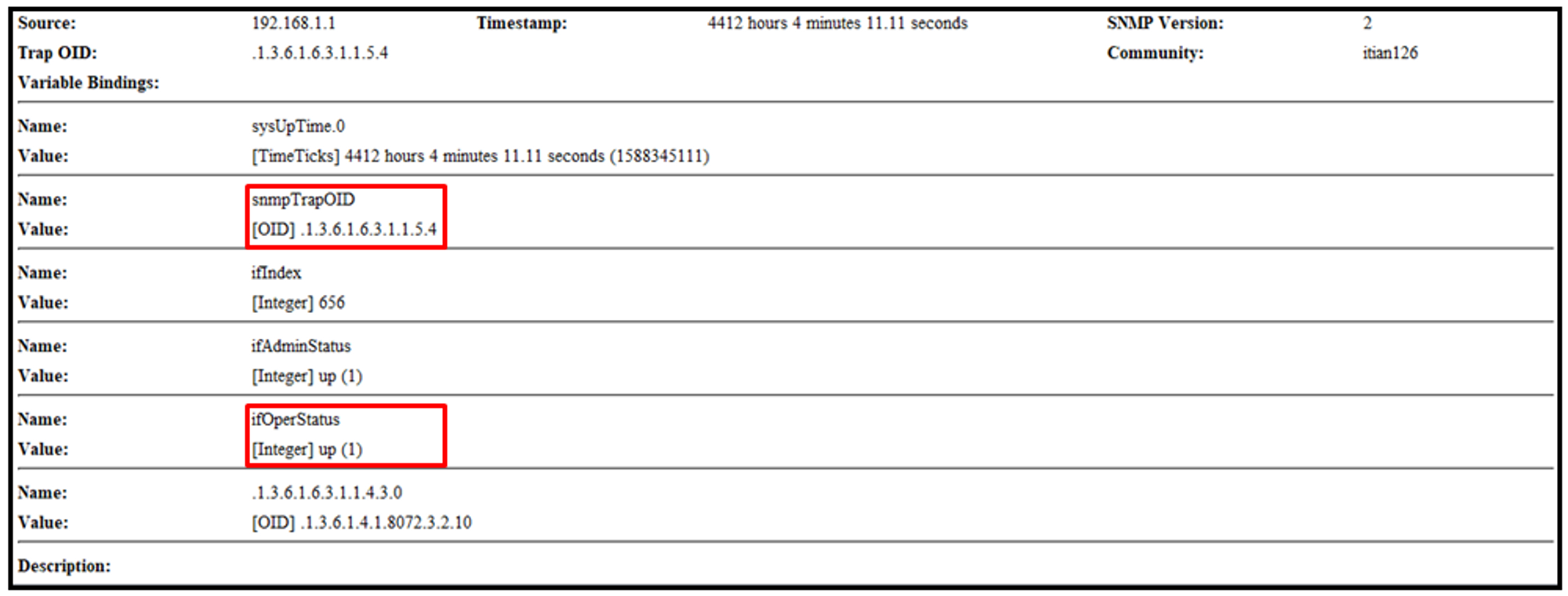Down 일경우엔 Trap OID .1.3.6.1.6.3.1.1.5.3 가 추가로 발생한다.