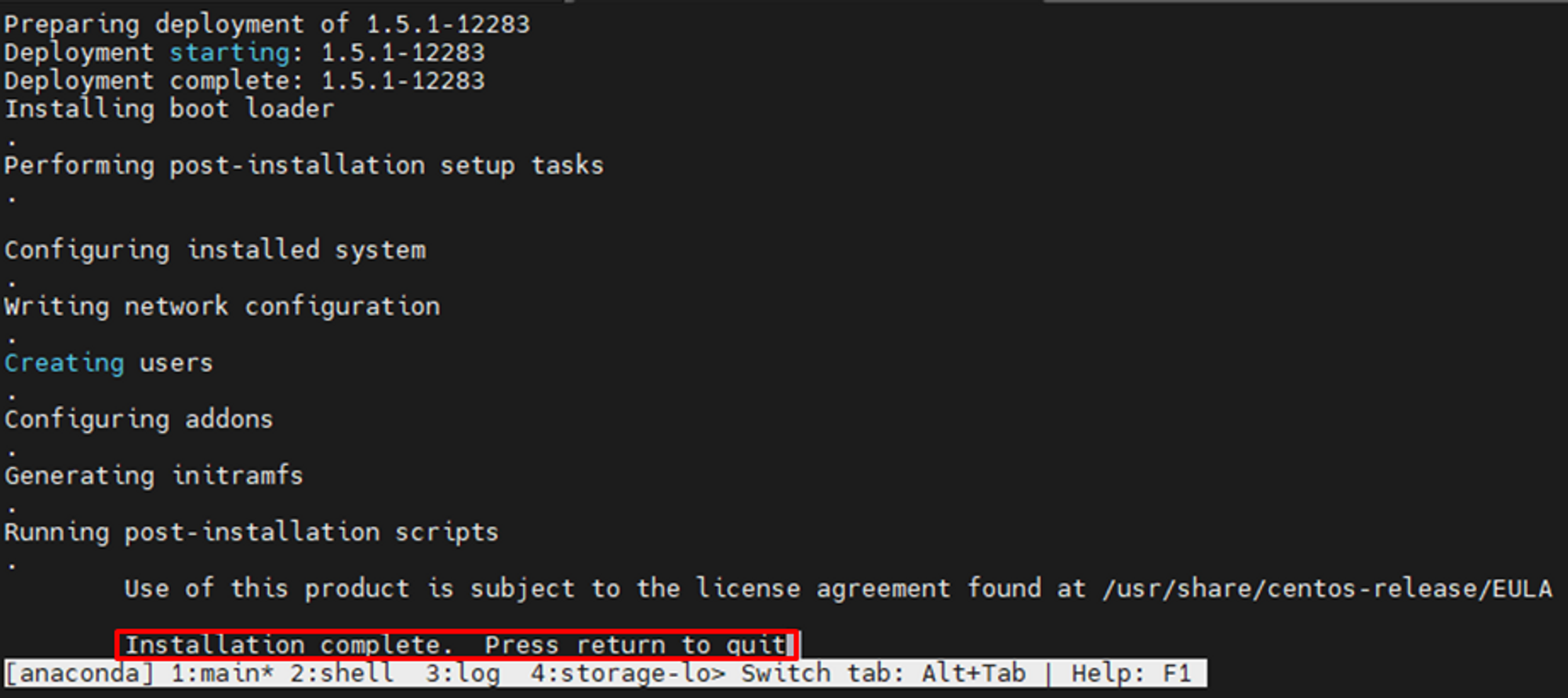 설치가 완료 되면 아무 버튼이나 눌러 장비 재시작 진행.
