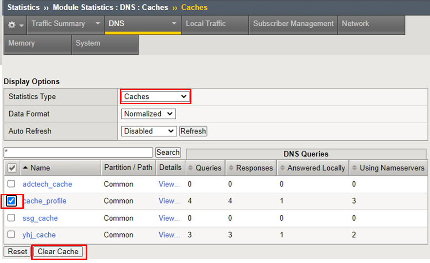 Statistics ›› Module Statistics : DNS : Caches ›› Caches 메뉴로 이동