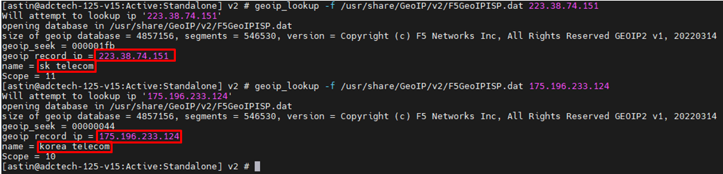 geoip_lookup -f /usr/share/GeoIP/v2/F5GeoIPISP.dat 175.196.233.124